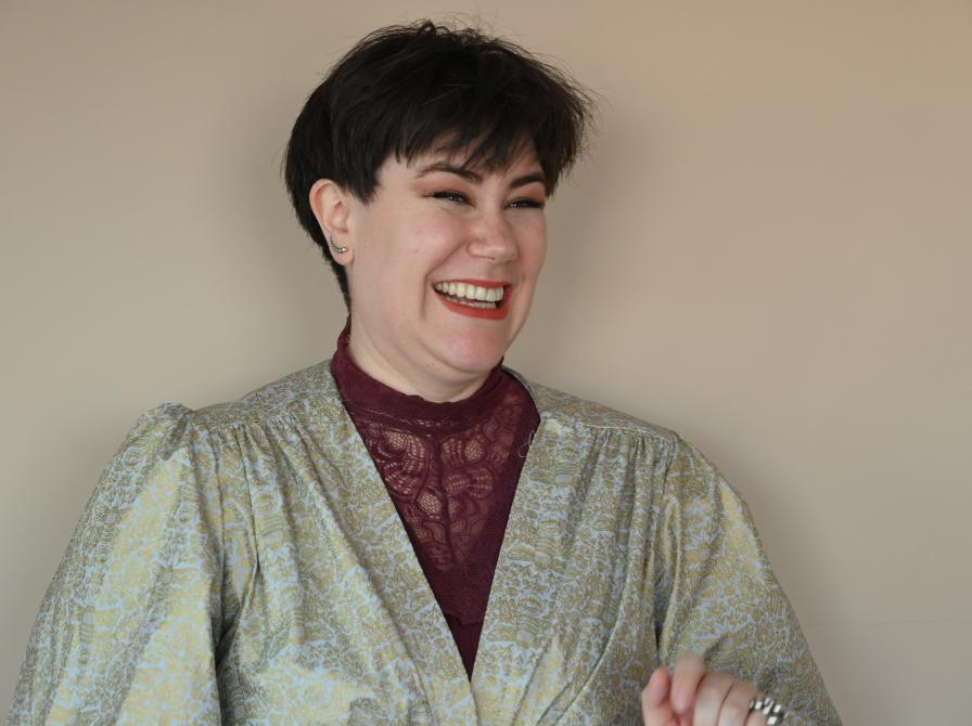 Til daglig bor hun i Esbjerg med sin familie, arbejder på kommunens bibliotek og griner virkeligt, virkeligt højt. Resten af tiden fordeler hun mellem at skrive og bruge sin symaskine.